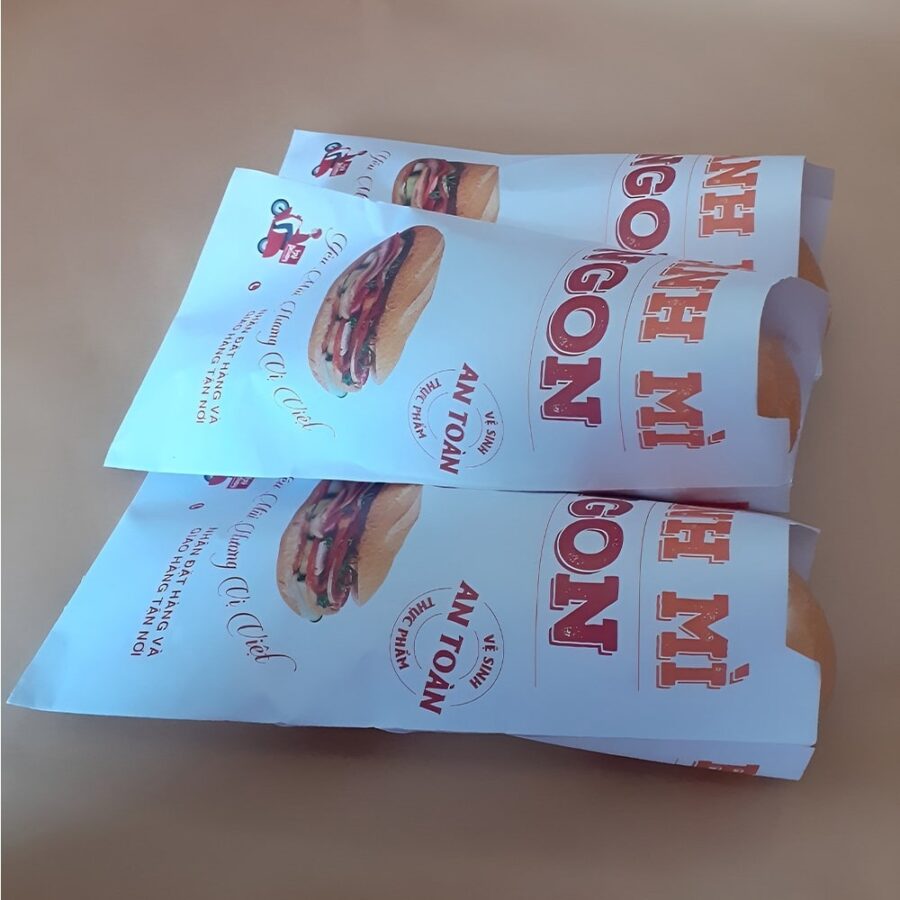 | 4 | Túi giấy đựng bánh mì có hông, in theo yêu cầu | 600đ/ cái | Số lượng tối thiểu 10.000 cái/ lần |