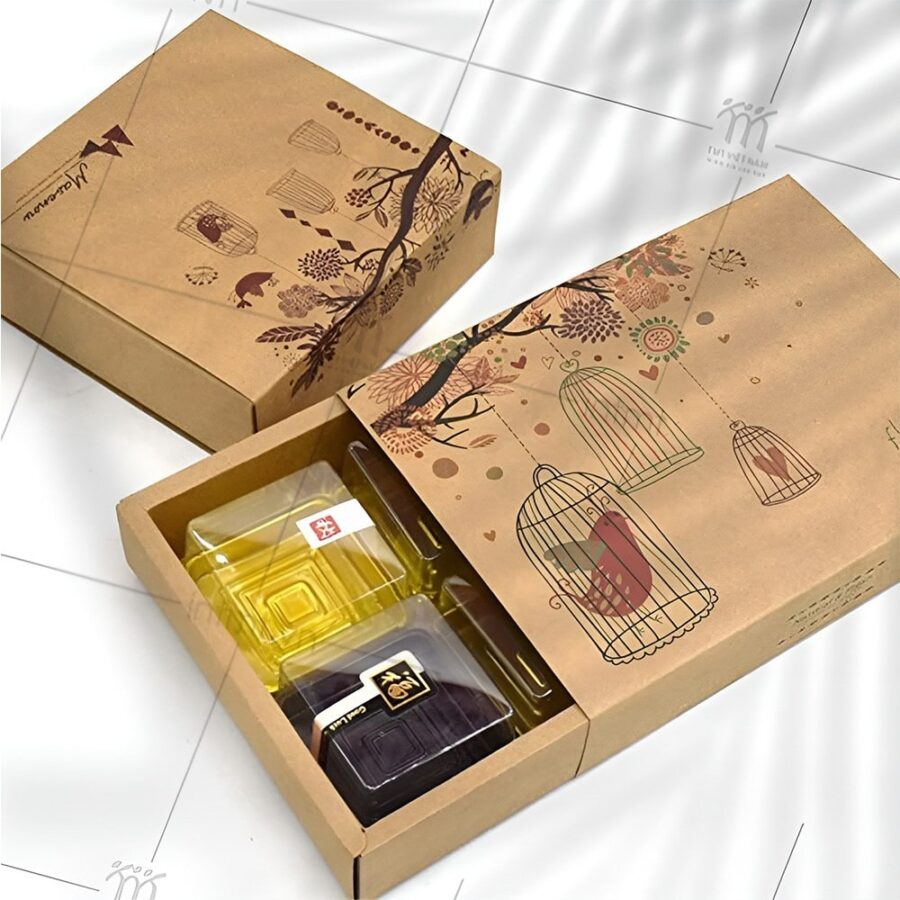 - In ấn: Hộp giấy Kraft có thể được in ấn với nhiều hình ảnh, logo, thông tin khác nhau, giúp quảng bá thương hiệu của doanh nghiệp.